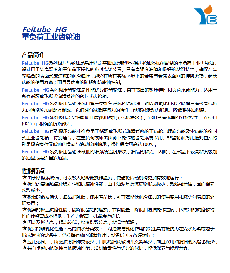 FeiLube HG重负荷工业齿轮油